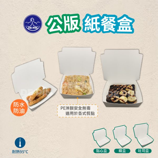 首頁 私版印刷 公版紙餐盒(點心盒系列) 🔍 公版紙餐盒(點心盒系列) ◆ 紙餐盒 – 容量:220ml/350ml/450ml – 材質:紙漿+PE淋膜 – 耐熱度:95度 – 顏色:公版 – 包裝: 點心盒:100入/10條/箱 粿盒:100入/9條/箱 吐司盒:100入/6條/箱 描述 相關商品 全白紙餐盒(一體大)紙便當盒/餐盒系列, 全白紙餐盒 公版紙湯杯系列私版印刷, 紙湯杯/蓋系列, 公版-紙湯杯 公版紙餐盒(一體大)私版印刷, 紙便當盒/餐盒系列, 公版紙餐盒 全白紙餐盒紙便當盒/餐盒系列, 全白紙餐盒